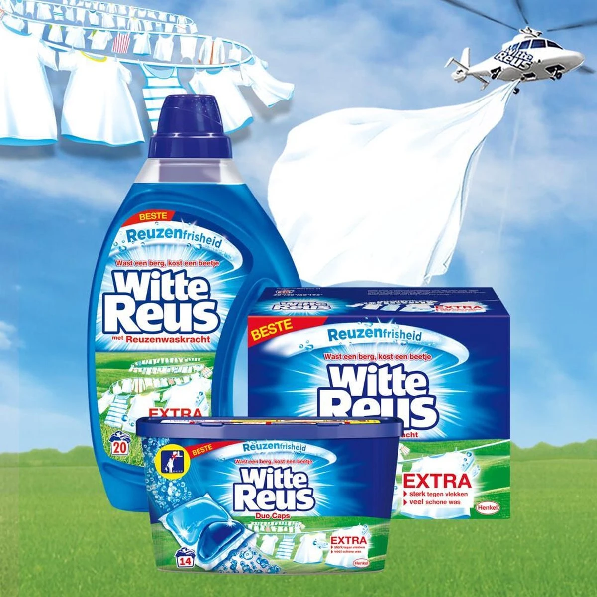 Of het nu gaat om vloeibare wasmiddelen, wasmiddelcapsules, poeders of megaparels – Witte Reus is bijzonder effectief tegen vlekken en wast uw wasgoed weer stralend schoon en fris. Witte Reus wast een berg, kost een beetje.